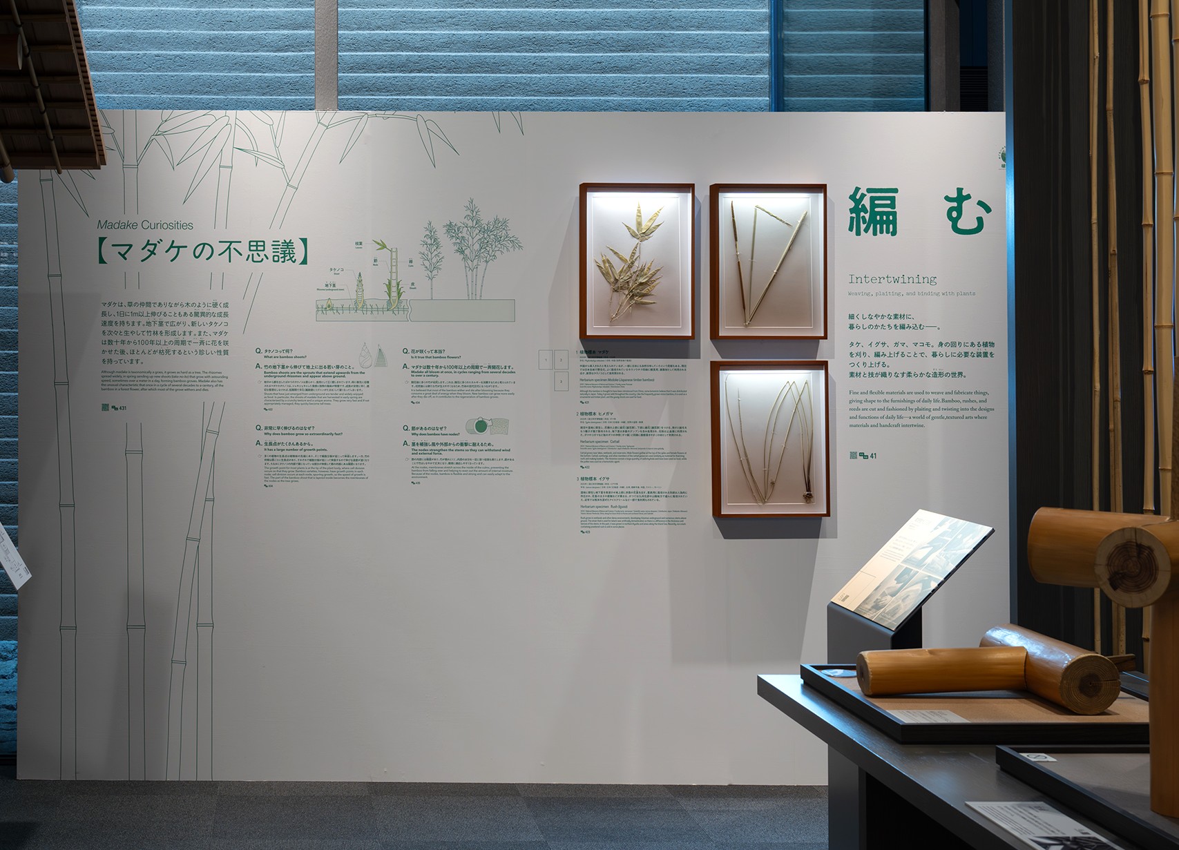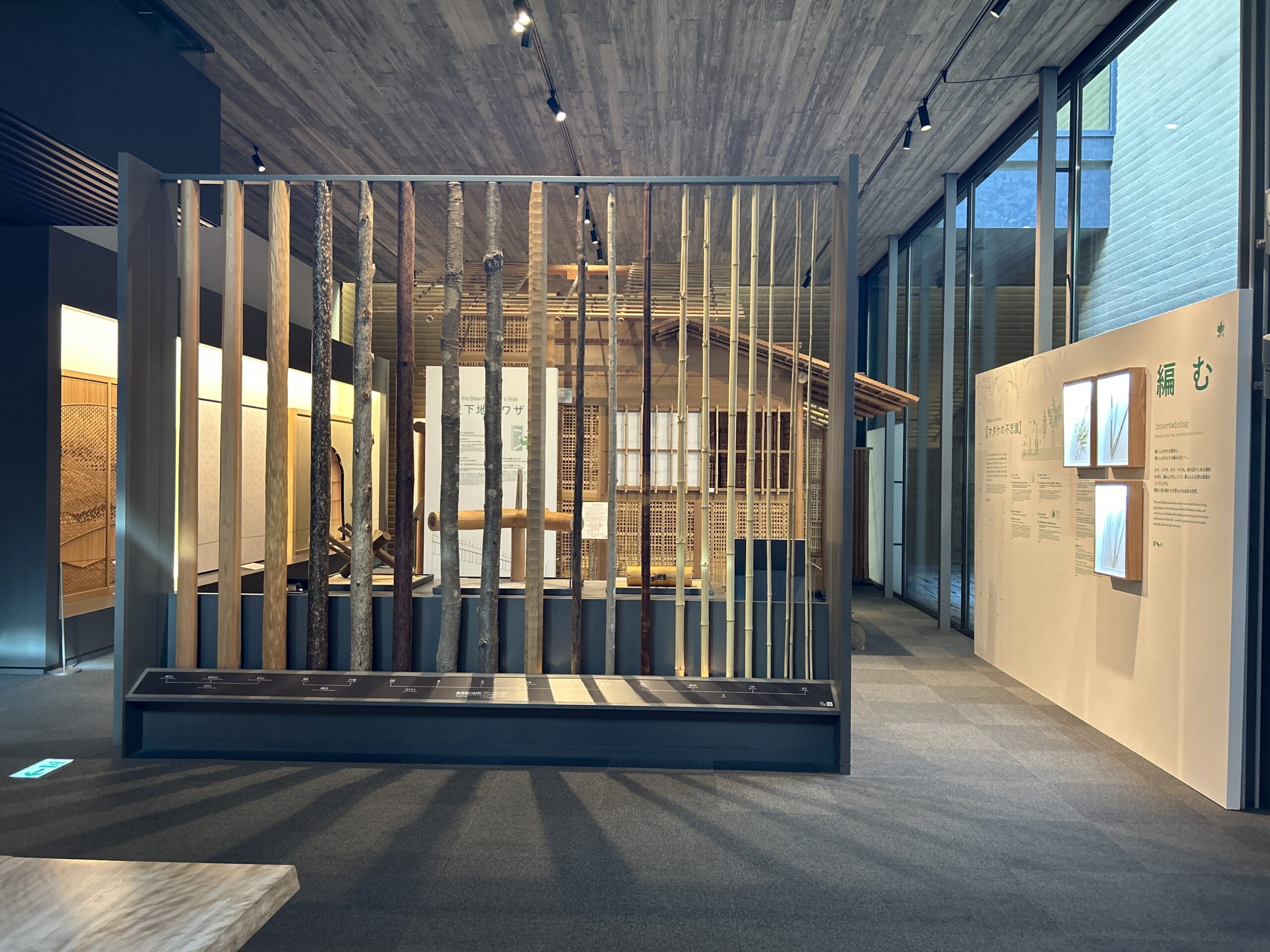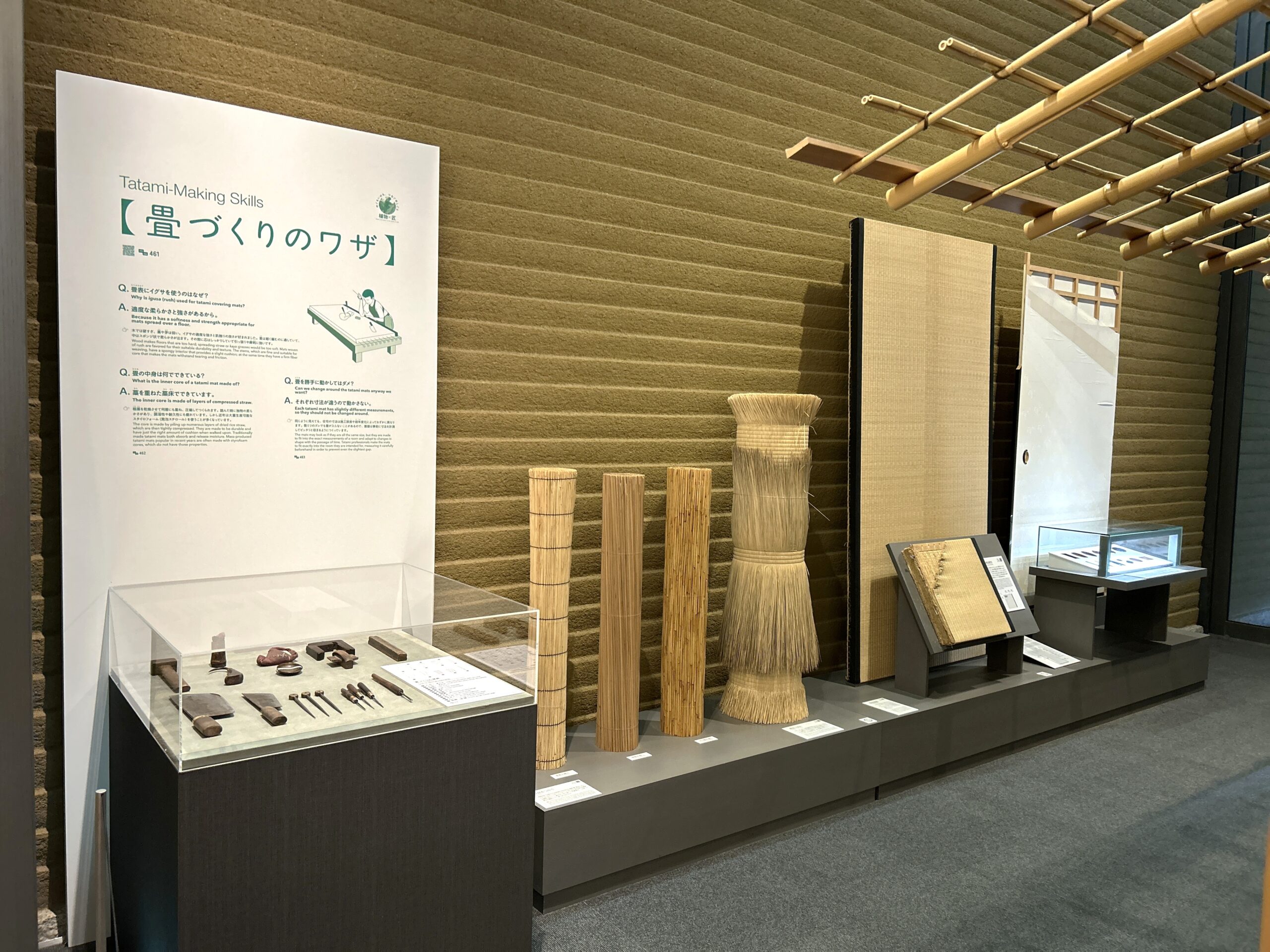 常設展示「和の伝統美」コーナーと連動。茶室スケルトン模型を中心に、タケ・イグサ・ヒメガマの植物標本、壁下地、畳の解説を紹介しています。