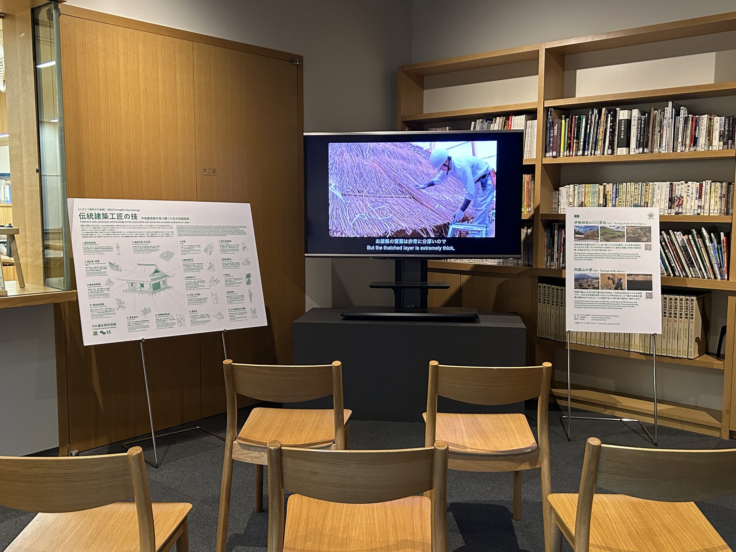 1階の〈葺く〉コーナーで上映している映像の本編(完全版)をイスに座ってゆっくり鑑賞できます。